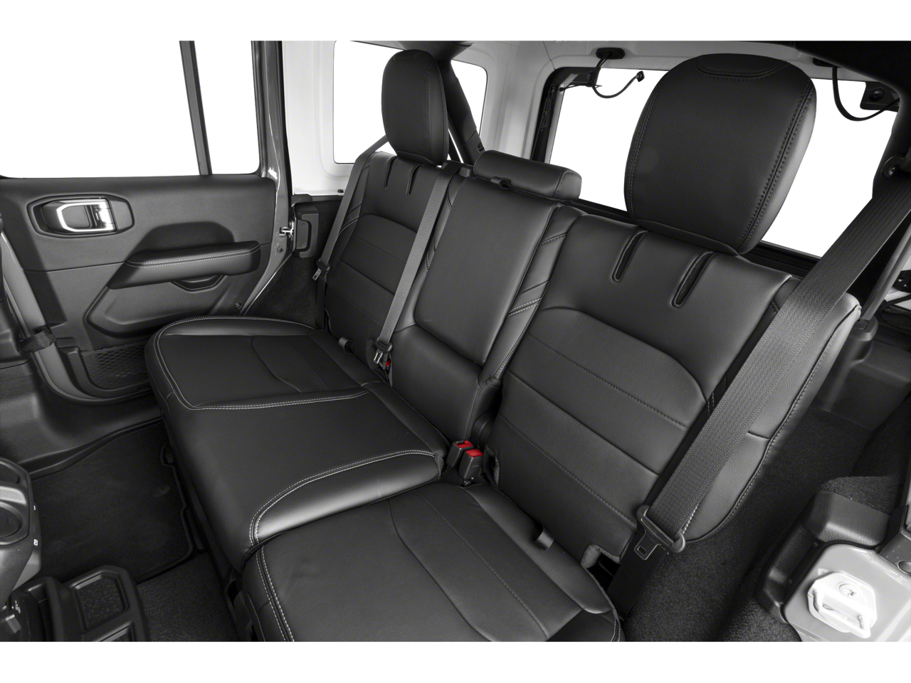 Inside, you will find an 8.4 inch touchscreen with Uconnect navigation, Apple CarPlay, Android Auto, SiriusXM, ambient interior lighting, automatic climate control, and a premium wrapped steering wheel. The Sahara trim adds body color fender flares, blue tow hooks, and refined interior appointments while retaining Wrangler trail ready capability.