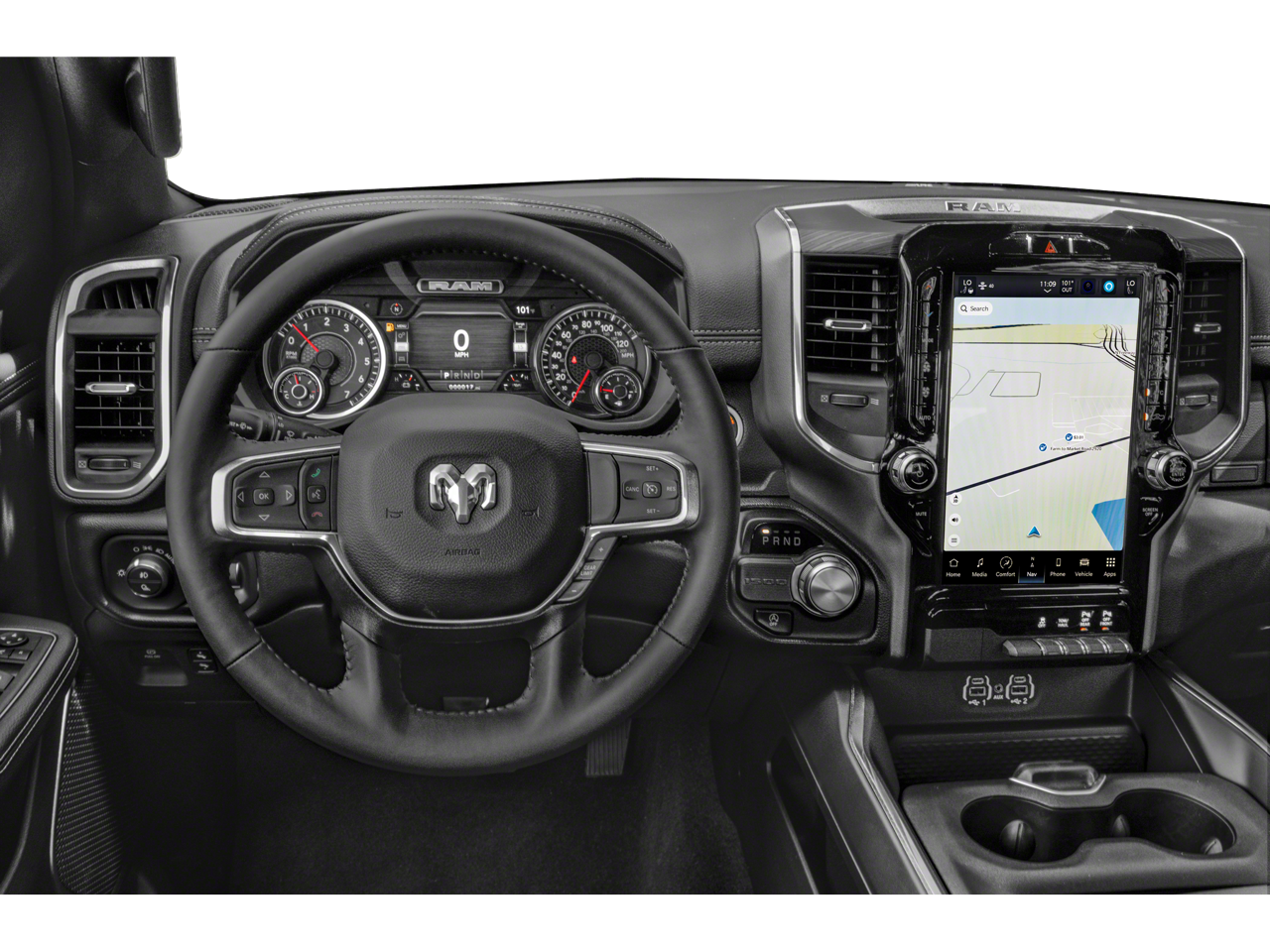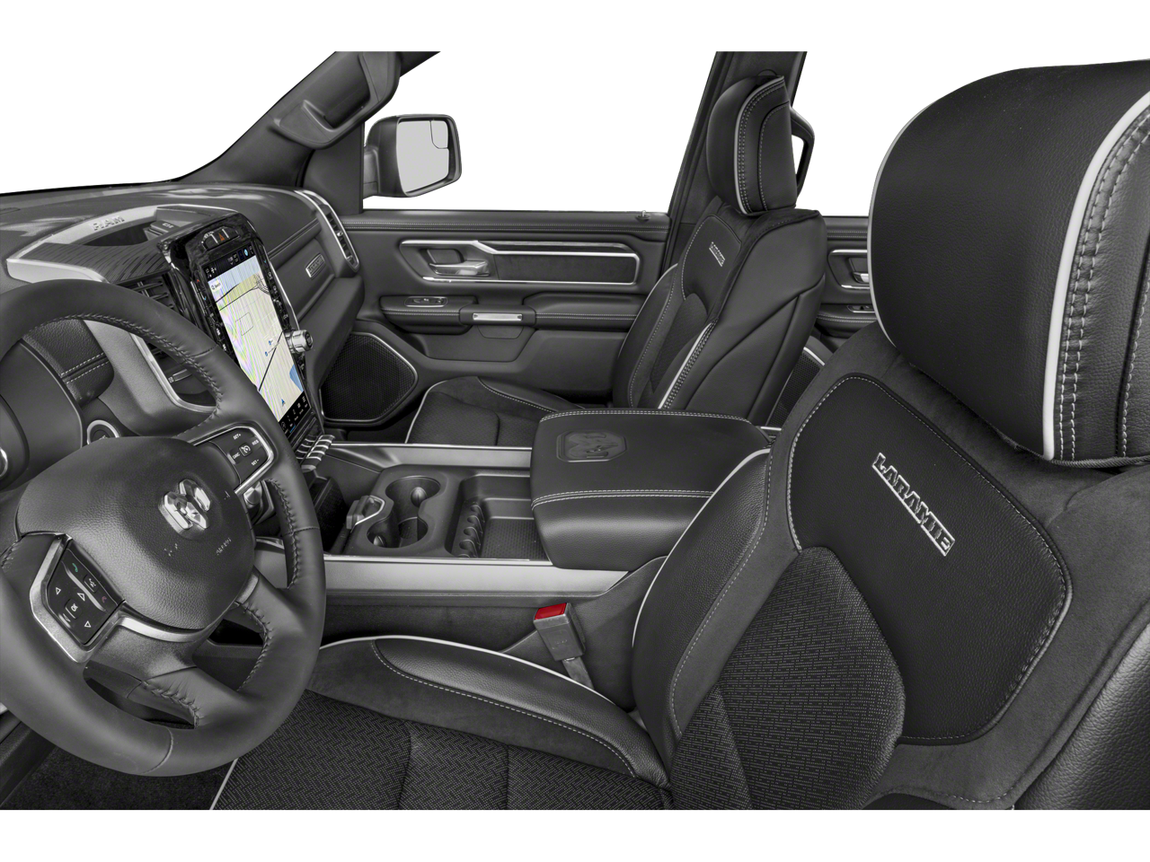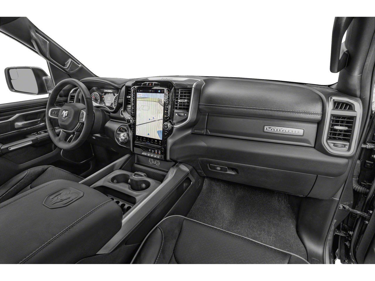 12" Touchscreen Display, 2nd Row In Floor Storage Bins, 4G LTE Wi-Fi Hot Spot, Apple CarPlay, Auto High Beam Headlamp Control, Blind Spot & Cross Path Detection, Connected Travel & Traffic Services, Connectivity - US/Canada, Disassociated Touchscreen Display, Foam Bottle Insert (Door Trim Panel), For Details, Visit DriveUconnect.com, For More Info, Call 800-643-2112, Front Door Accent Lighting, Front LED Fog Lamps, Global Telematics Box Module (TBM), Google Android Auto, GPS Antenna Input, GPS Navigation, HD Radio, Integrated Center Stack Radio, Integrated Voice Command w/Bluetooth®, Laramie Level 1 Equipment Group, LED Reflector Headlamps, ParkSense Front/Rear Park Assist w/Stop, Quick Order Package 27H Laramie, Radio: Uconnect 5 Nav w/12.0" Display, Rain Sensitive Windshield Wipers, Rear Door Accent Lighting, Rear Power Sliding Window, Rear Window Defroster, Remote Tailgate Release, SiriusXM Radio Service, SiriusXM w/360L, USB Host Flip, #1 Seat Foam Cushion, 10 Speakers, 3 Rear Seat Head Restraints, 3.21 Rear Axle Ratio, 4 Way Front Headrests, 4-Wheel Disc Brakes, 48V Belt Starter Generator, ABS brakes, Adjustable pedals, Air Conditioning, Alloy wheels, AM/FM radio: SiriusXM with 360L, Apple CarPlay/Android Auto, Audio memory, Auto-dimming door mirrors, Auto-Dimming Exterior Driver Mirror, Auto-dimming Rear-View mirror, Automatic temperature control, Brake assist, Bumpers: chrome, Chrome Exterior Mirrors, Chrome Power-Fold Trailer Tow Mirrors (DISC), Class IV Receiver Hitch, Compass, Convex Wide-Angle Exterior Mirror Insert, Delay-off headlights, Driver door bin, Driver Seat Memory, Driver vanity mirror, Dual front impact airbags, Dual front side impact airbags, Electronic Stability Control, Exterior Mirrors Courtesy Lamps, Exterior Mirrors w/Heating Element, Exterior Mirrors w/Memory, Exterior Mirrors w/Supplemental Signals, Exterior Parking Camera Rear, Front anti-roll bar, Front Center Armrest w/Storage, Front dual zone A/C, Front fog lights, Front License Plate Bracket, Front reading lights, Front Seat Back Map Pockets, Front wheel independent suspension, Fully automatic headlights, Garage door transmitter, Heated door mirrors, Heated Front Seats, Heated front seats, Heated Steering Wheel, Heated steering wheel, Illuminated entry, Leather steering wheel, Leather Trim 40/20/40 Bench Seat, Low tire pressure warning, Manufacturer's Statement of Origin, Memory seat, Mirror Clearance/Running Lights, Mirror-Mounted Aux Reverse Lamps, Navigation System, Occupant sensing airbag, Outside temperature display, Overhead airbag, Overhead console, Panic alarm, ParkSense Front/Rear Park Assist w/Stop (DISC), Passenger door bin, Passenger vanity mirror, Pedal memory, Power 2-Way Driver Lumbar Adjust, Power 2-Way Passenger Lumbar Adjust, Power 8-Way Driver & Passenger Seats, Power door mirrors, Power driver seat, Power passenger seat, Power steering, Power windows, Power-Folding Mirrors, Radio data system, Radio: Uconnect 5 Nav w/8.4" Display, RAM Grille Badge - Chrome, Rear 60/40 Folding Seat, Rear anti-roll bar, Rear seat center armrest, Rear step bumper, Remote keyless entry, Security system, Speed control, Split folding rear seat, Steering wheel mounted audio controls, Tachometer, Telescoping steering wheel, Tilt steering wheel, Traction control, Trailer Brake Control, Trailer Light Check, Trailer Reverse Steering Control, Trailer Tire Pressure Monitoring System, Trailer Tow Group, Trailer Tow Mirrors, Trip computer, Turn signal indicator mirrors, Variably intermittent wipers, Ventilated Front Seats, Ventilated front seats, Voltmeter, Wheel to Wheel Side Steps, Wheels: 18" x 8" Aluminum Base Painted, 12" Touchscreen Display, 2nd Row In Floor Storage Bins, 4G LTE Wi-Fi Hot Spot, Apple CarPlay, Auto High Beam Headlamp Control, Blind Spot & Cross Path Detection, Connected Travel & Traffic Services, Connectivity - US/Canada, Disassociated Touchscreen Display, Foam Bottle Insert (Door Trim Panel), For Details, Vis